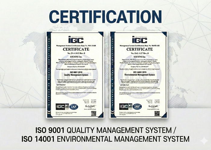 Produced under ISO 9001 and ISO 14001 systems to maintain consistent and reliable product quality. International manufacturing standards support stable performance across applications.
